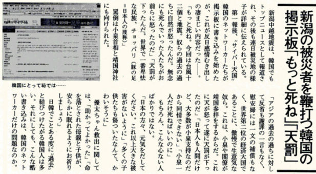 被災者に対し「天罰」「もっと死ね」といってのける鬼畜。これが朝鮮人の腐った本性である。